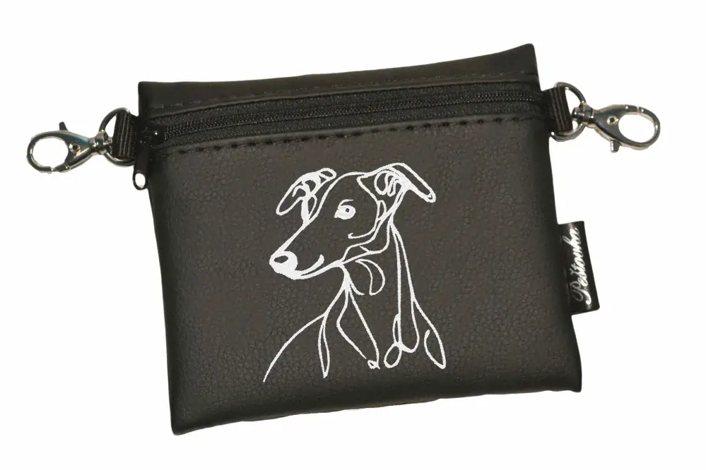 Elegantní pamlskovník se zipem, z krásné zahraniční koženky, je vhodný především jako doplněk při vystavování pejsků na výstavách.