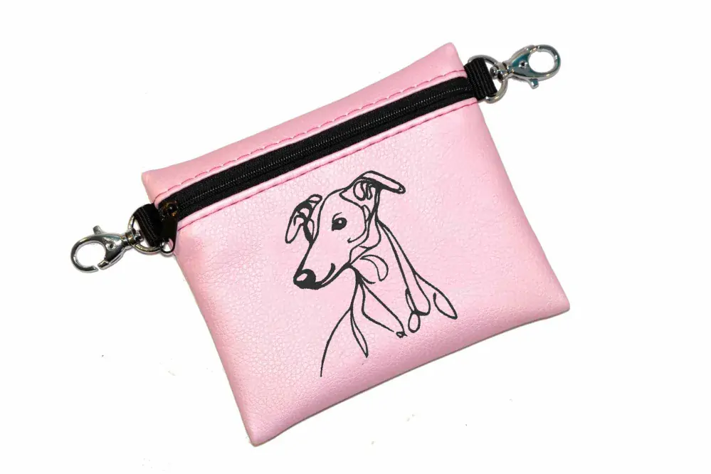 Elegantní pamlskovník se zipem, z krásné zahraniční koženky, je vhodný především jako doplněk při vystavování pejsků na výstavách.
