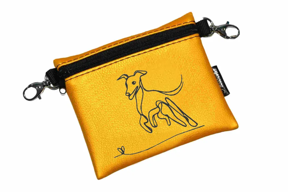 Elegantní pamlskovník se zipem, z krásné zahraniční koženky, je vhodný především jako doplněk při vystavování pejsků na výstavách.