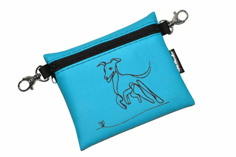 Elegantní pamlskovník se zipem, z krásné zahraniční koženky, je vhodný především jako doplněk při vystavování pejsků na výstavách.