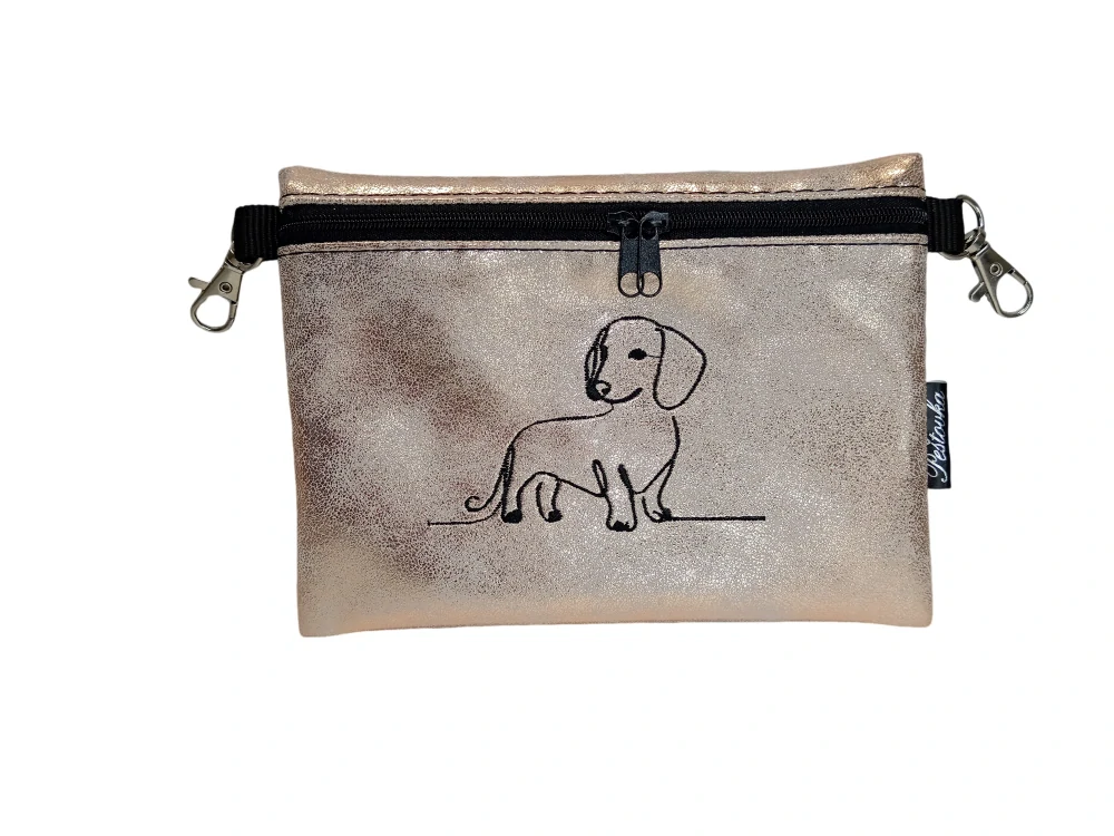 Elegantní pamlskovník XXL se zipem, z krásné zahraniční koženky, je vhodný především jako doplněk při vystavování pejsků na výstavách. Tato rozšířená verze má dva protichůdné jezdce a pojme i dnešní chytré telefony, takže ho můžete využít i jako doplněk šatům, kde vámchybí kapsička na klíče a telefon.