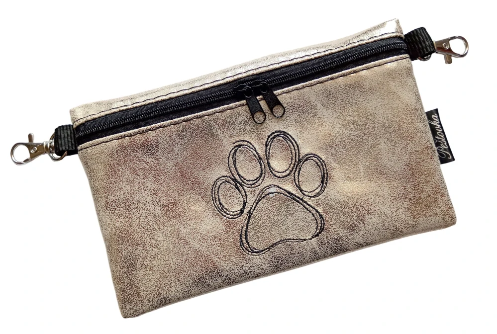 Elegantní pamlskovník XXL se zipem, z krásné zahraniční koženky, je vhodný především jako doplněk při vystavování pejsků na výstavách. Tato rozšířená verze má dva protichůdné jezdce a pojme i dnešní chytré telefony, takže ho můžete využít i jako doplněk šatům, kde vámchybí kapsička na klíče a telefon.