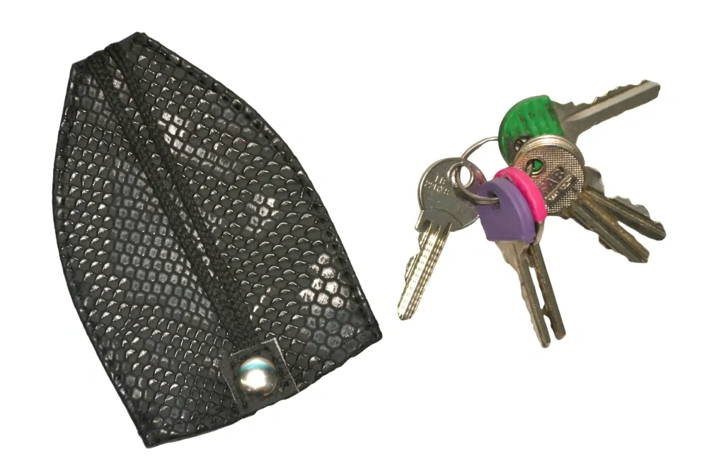 Pouzdro na klíče s kroužkem na šňůrce pomocí které klíče snadno vtáhnete dovnitř. Šňůrku pak přicvaknete k patentu a klíče zůstanou uvnitř. Nepoškodíte si tedy klíči například kapsu nebo podšívku kabelky.