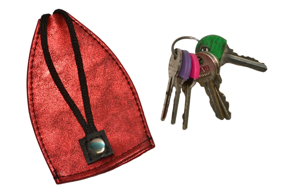 Pouzdro na klíče s kroužkem na šňůrce pomocí které klíče snadno vtáhnete dovnitř. Šňůrku pak přicvaknete k patentu a klíče zůstanou uvnitř. Nepoškodíte si tedy klíči například kapsu nebo podšívku kabelky.