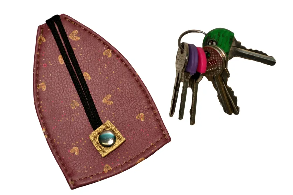 Pouzdro na klíče s kroužkem na šňůrce pomocí které klíče snadno vtáhnete dovnitř. Šňůrku pak přicvaknete k patentu a klíče zůstanou uvnitř. Nepoškodíte si tedy klíči například kapsu nebo podšívku kabelky.