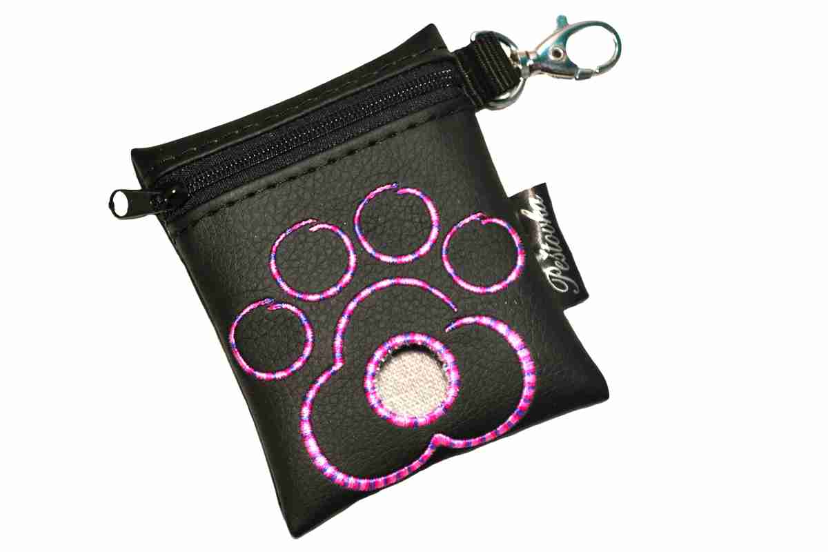Vyšívaný zásobník/obal na sáčky na extrementy (bobkosáčky). Je ušitý kvalitní koženky, lze ho karabinkou zavěsit na batoh, tašku, klíče nebo vodítko .... prostě tam, kde ho potřebujete mít.