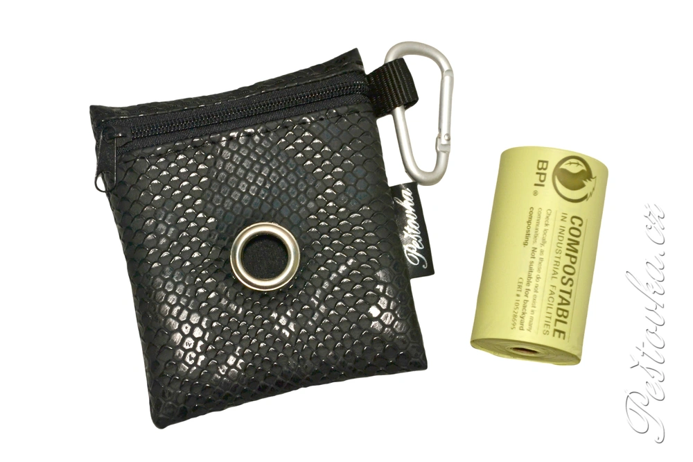 Vyšívaný zásobník/obal na sáčky na extrementy (bobkosáčky). Je ušitý kvalitní koženky, lze ho karabinkou zavěsit na batoh, tašku, klíče nebo vodítko .... prostě tam, kde ho potřebujete mít.