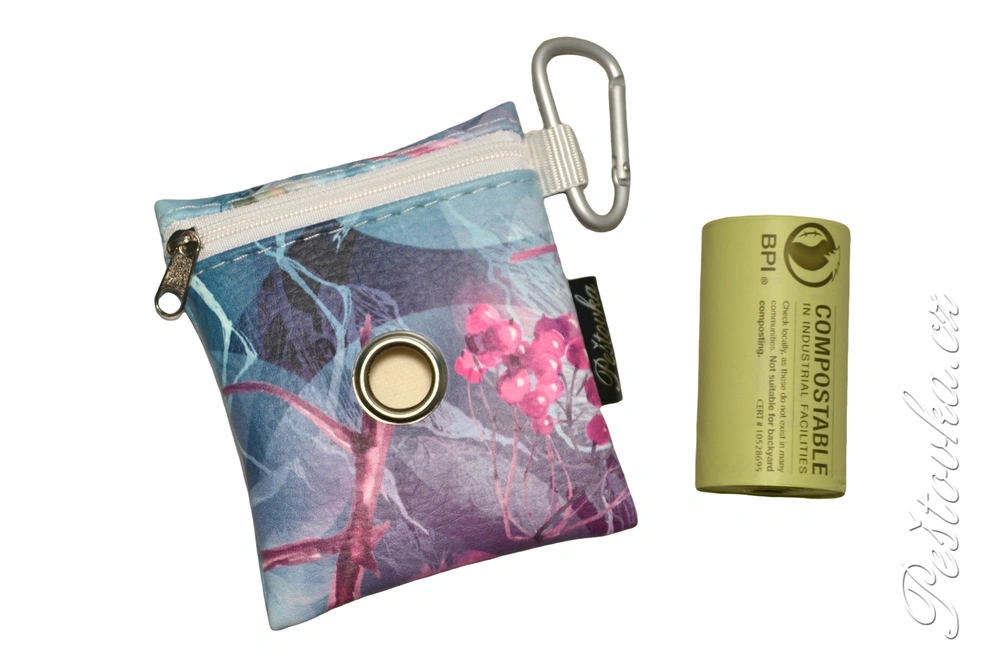 Vyšívaný zásobník/obal na sáčky na extrementy (bobkosáčky). Je ušitý kvalitní koženky, lze ho karabinkou zavěsit na batoh, tašku, klíče nebo vodítko .... prostě tam, kde ho potřebujete mít.