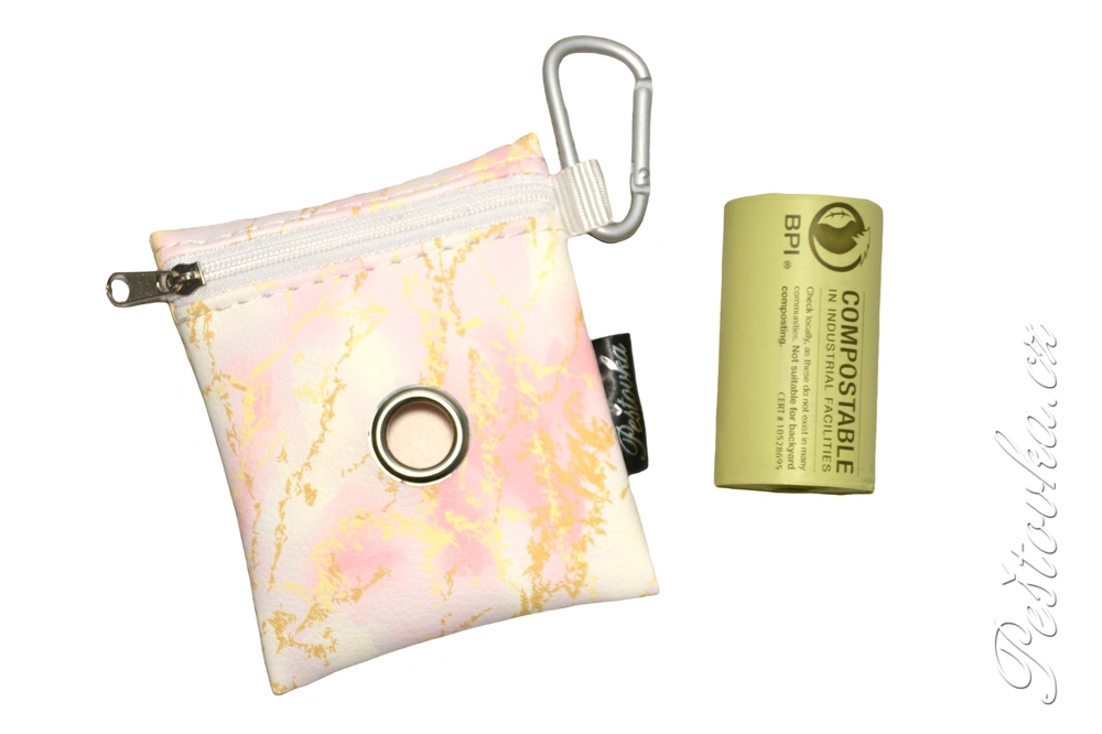 Vyšívaný zásobník/obal na sáčky na extrementy (bobkosáčky). Je ušitý kvalitní koženky, lze ho karabinkou zavěsit na batoh, tašku, klíče nebo vodítko .... prostě tam, kde ho potřebujete mít.