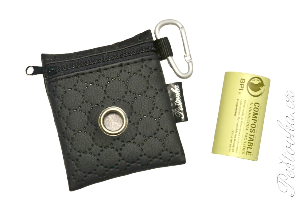 Vyšívaný zásobník/obal na sáčky na extrementy (bobkosáčky). Je ušitý kvalitní koženky, lze ho karabinkou zavěsit na batoh, tašku, klíče nebo vodítko .... prostě tam, kde ho potřebujete mít.
